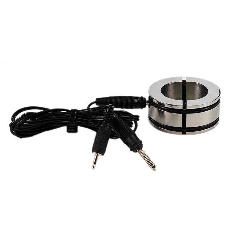 Este anillo para los testículos incluye el cable con conectores de banana. Está formado por dos medios anillos (+ y -) de goma, formando un anillo completo de 3,4 cm de diámetro (interior). Solo cuando los dos anillos estén unidos y toquen la piel se conectará el electro shock. Gracias a su conector de 2,5 mm podrás conectarlo a los Power Box de Rimba.