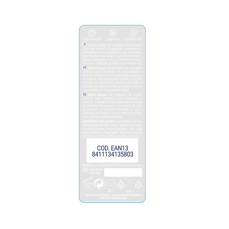 La magia de una noche caribeña envuelve momentos de placer gracias a Exotic Escape, el gel de masaje 2 en 1 con un aroma exótico como las frutas de Sudamérica. Tiene una acción hidratante y estimulante que contribuye al bienestar, la tranquilidad y el equilibrio. Ideal para masajes sensuales en todo el cuerpo gracias a su textura suave y sedosa De base acuosa e hipoalergénica. Exotic Escape no mancha, se puede ingerir en pequeñas cantidades y es compatible con el uso de preservativos.