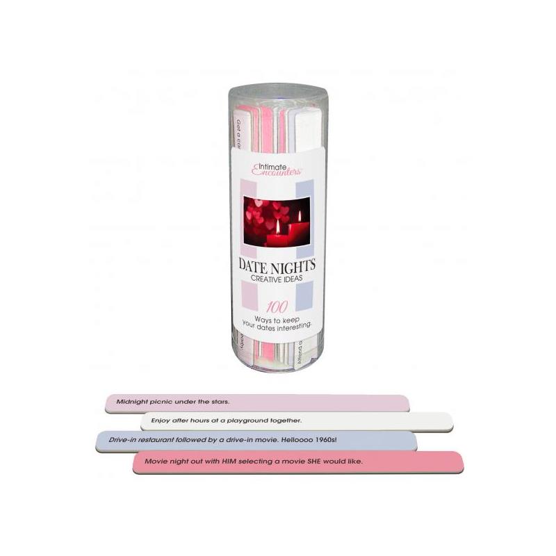 100 Ideas para tener citas interesantes. Siempre que necesitéis una idea para una cita, podréis seleccionar un palo de idea y disfrutar juntos. Leed ambos lados del palo juntos y elegid el lado que más os guste. Te recomendamos colocar los palos de ideas de forma decorativa para aumentar el disfrute. Incluye 50 palos con 100 ideas creativas.